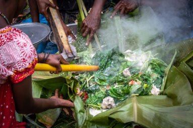 David Soroda reflects on Papua New Guinea’s rich food heritage, from smoky and tender meat and root vegetables prepared in a mumu in the Highlands to fresh fish in coconut cream on the coast.